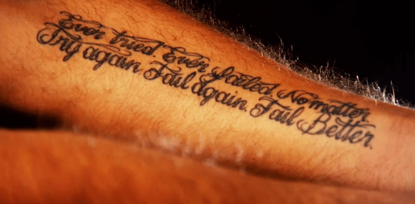 It reads: “Ever tried. Ever failed. No Matter. Try again. Fail again. Fail Better.”